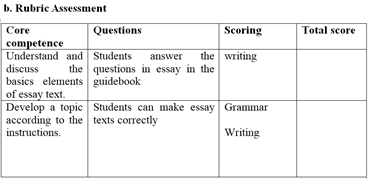 Teacher uses an assessment based on the curriculum K to 12. The teacher usually gives a short quiz, long quiz, homework, discussion, presentation, and also the mid-term and end-term exam. In the end of the section, the teacher should re-acknowledge the student about the topic that is thought in that day to measure whether the students are understood or not. 1.6 Curriculum