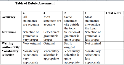 The teacher will divide the students into 3 groups as group “Aku”, group “Kamu”, and group “Kita”. Then, the teacher will post an essay on power point and let the students to make an outline from that essay.